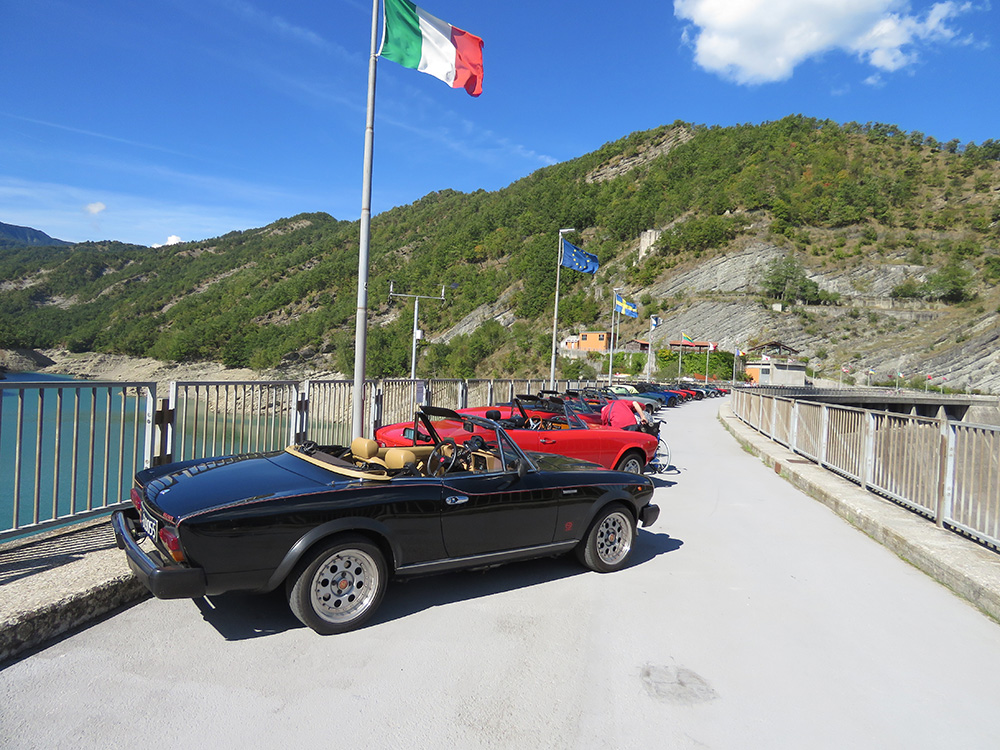 Dopo la buona e ricca colazione della Domenica mattinaci siamo avviati verso la diga di Ridracoli, su un bellissimo percorso di 36 Km sempre su strade confortevoli anche se impegnative per le nostre vetture più anziane, che hanno nuovamente superato brillantemente l’esame della strada! La diga fu costruita sul fiume Bidente e completata nei primi anni 80 dando vita a un lago incastonato tra foreste spettacolari del parco delle Foreste Casentinesi. Si tratta di un’opera di alta ingegneria che non molti conoscono, lunga oltre 400 metri , alta 103 metri e mezzo, con una larghezza massima di 36 metri alla base; sul camminamento superiore la larghezza è di 10 metri e dal 1987 fornisce acqua potabile a oltre un milione di persone nei comuni della Romagna e alla Repubblica di San Marino. La diga è inoltre dotata di 7 centrali elettriche di varie dimensioni che nel 2020 hanno prodotto un totale di oltre 40 GWh. Un’opera molto importante per dimensioni ed utilità, sulla cui storia e caratteristiche le competenti guide locali ci hanno fornito spiegazioni estremamente interessanti nel percorso tra i cunicoli, cuore della struttura. Indimenticabile il posizionamento delle vetture sul corridoio superiore della diga, che ha creato un suggestivo connubio di colori e forme decisamente insolito per un luogo così particolare, e che resterà uno dei ricordi più spettacolari dei nostri raduni Emersi un po’ intimoriti dalle viscere di cemento della diga, ma confortati dalla simpatia delle guide, ci siamo avviati, sempre in gran ordine, verso il vicino ristorante Il Palazzo che ci ha accolto con un ottimo pranzo, accompagnato dalla solita ospitalità e simpatia romagnola. Ancora un raduno ben riuscito, che è stato possibile non certo grazie al caso, bensì alla dedizione, capacità organizzativa e continua attenzione ai dettagli dei membri del Registro che si sono impegnati sia prima che durante il raduno a gestire in prima persona quanto necessario minuto per minuto alla buona riuscita della manifestazione. Un grazie a loro e un grande grazie ai soci che ancora una volta hanno voluto partecipare e ritrovarsi in questo evento. Arrivederci al prossimi appuntamenti del Registro Nazionale Fiat 124 Sport Spider. permalink: 66° Raduno, Settembre 2025. Santarcangelo e Diga di Ridracoli | News |