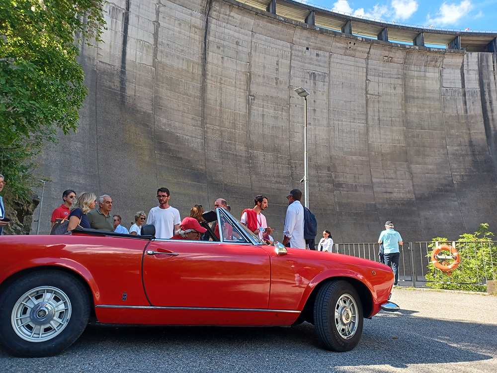 Dopo la buona e ricca colazione della Domenica mattinaci siamo avviati verso la diga di Ridracoli, su un bellissimo percorso di 36 Km sempre su strade confortevoli anche se impegnative per le nostre vetture più anziane, che hanno nuovamente superato brillantemente l’esame della strada! La diga fu costruita sul fiume Bidente e completata nei primi anni 80 dando vita a un lago incastonato tra foreste spettacolari del parco delle Foreste Casentinesi. Si tratta di un’opera di alta ingegneria che non molti conoscono, lunga oltre 400 metri , alta 103 metri e mezzo, con una larghezza massima di 36 metri alla base; sul camminamento superiore la larghezza è di 10 metri e dal 1987 fornisce acqua potabile a oltre un milione di persone nei comuni della Romagna e alla Repubblica di San Marino. La diga è inoltre dotata di 7 centrali elettriche di varie dimensioni che nel 2020 hanno prodotto un totale di oltre 40 GWh. Un’opera molto importante per dimensioni ed utilità, sulla cui storia e caratteristiche le competenti guide locali ci hanno fornito spiegazioni estremamente interessanti nel percorso tra i cunicoli, cuore della struttura. Indimenticabile il posizionamento delle vetture sul corridoio superiore della diga, che ha creato un suggestivo connubio di colori e forme decisamente insolito per un luogo così particolare, e che resterà uno dei ricordi più spettacolari dei nostri raduni Emersi un po’ intimoriti dalle viscere di cemento della diga, ma confortati dalla simpatia delle guide, ci siamo avviati, sempre in gran ordine, verso il vicino ristorante Il Palazzo che ci ha accolto con un ottimo pranzo, accompagnato dalla solita ospitalità e simpatia romagnola. Ancora un raduno ben riuscito, che è stato possibile non certo grazie al caso, bensì alla dedizione, capacità organizzativa e continua attenzione ai dettagli dei membri del Registro che si sono impegnati sia prima che durante il raduno a gestire in prima persona quanto necessario minuto per minuto alla buona riuscita della manifestazione. Un grazie a loro e un grande grazie ai soci che ancora una volta hanno voluto partecipare e ritrovarsi in questo evento. Arrivederci al prossimi appuntamenti del Registro Nazionale Fiat 124 Sport Spider. permalink: 66° Raduno, Settembre 2025. Santarcangelo e Diga di Ridracoli | News |