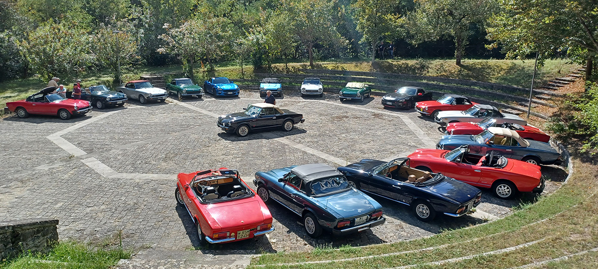 30 settembre 2025 66° Raduno, Settembre 2025. Santarcangelo e Diga di RidracoliSantarcangelo e Diga di Ridracoli con la 124 Spider Romagna mia… Romagna in fiore… tu sei la stella… tu sei l’amore… Tutti conosciamo a memoria questo motivo, che ci ha accompagnato idealmente in questo 66° raduno in terra di Romagna. Prima tappa e punto di ritrovo il borgo medioevale di Santarcangelo, dominata dalla Rocca medioevale dei Malatesta, ove alcuni ritengono che Paolo e Francesca siano stati uccisi, e non nel più noto castello di Gradara. Parlare di Romagna evoca ovviamente il litorale, le famose spiagge e la accesa vita notturna, ma Santarcangelo ci riporta in un’atmosfera medioevale ricca di storia e tradizioni, in cui la comunità conserva forte lo spirito romagnolo, caratterizzato dal senso dell’ospitalità e particolarmente sensibile ai temi sociali. Leggende e documenti storici attribuiscono poi a Santarcangelo la paternità del Sangiovese, i cui vitigni sono riportati in un documento notarile dei primi del ‘600. Santarcangelo annovera tra i propri cittadini personaggi di spicco tra cui Tonino Guerra, scrittore e sceneggiatore di fama internazionale, con oltre 120 film tra cui l’indimenticabile Amarcord. E parlando di cittadini famosi di Santarcangelo, nel corso della visita abbiamo anche incontrato casualmente l’attore Fabio De Luigi regista, scrittore, sceneggiatore che ha simpaticamente salutato il gruppo. La visita al borgo è stata brillantemente illustrata dalle guide locali che con competenza e capacità di coinvolgere i visitatori ci hanno accompagnato a scoprire un borgo molto curato, in cui abbiamo scoperto l’inattesa presenza di grotte, gallerie, ghiacciaie, vie di fuga, in cui nei secoli gli abitanti hanno racchiuso e conservato scorte di cibo e vino, riserve d’acqua e quanto necessario per sostenere i lunghi assedi che duravano mesi se non anni. Dal parcheggio alla partenza abbiamo trovato la completa e fattiva collaborazione delle istituzioni locali che hanno reso il nostro viaggio nel borgo una esperienza interessante e serena. Tragitto : 72 km sabato - 36 Km domenica